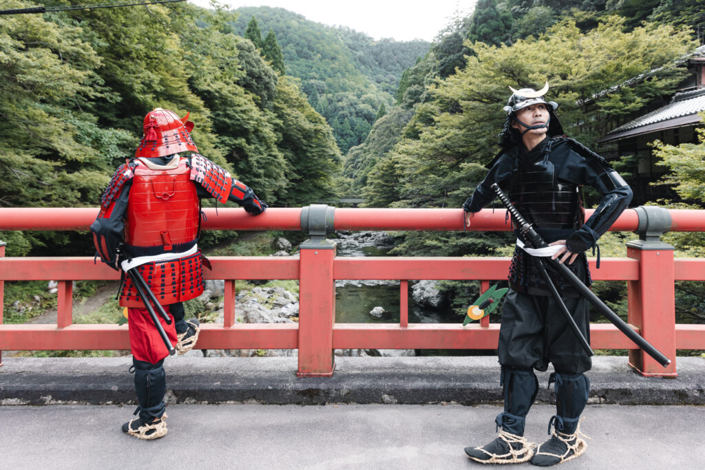 如何來一趟武士拍攝之旅呢?穿上甲冑,巡遊京都嵐山的兩大觀光景點——『渡月橋』與『竹林』,以及這次介紹的嵯峨野『平野屋』,還有專業攝影師為您拍攝紀念照。