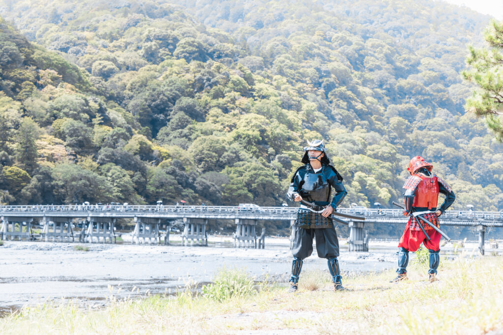伴隨桂川的優美水流,是拍攝武士英姿的最佳取景地。