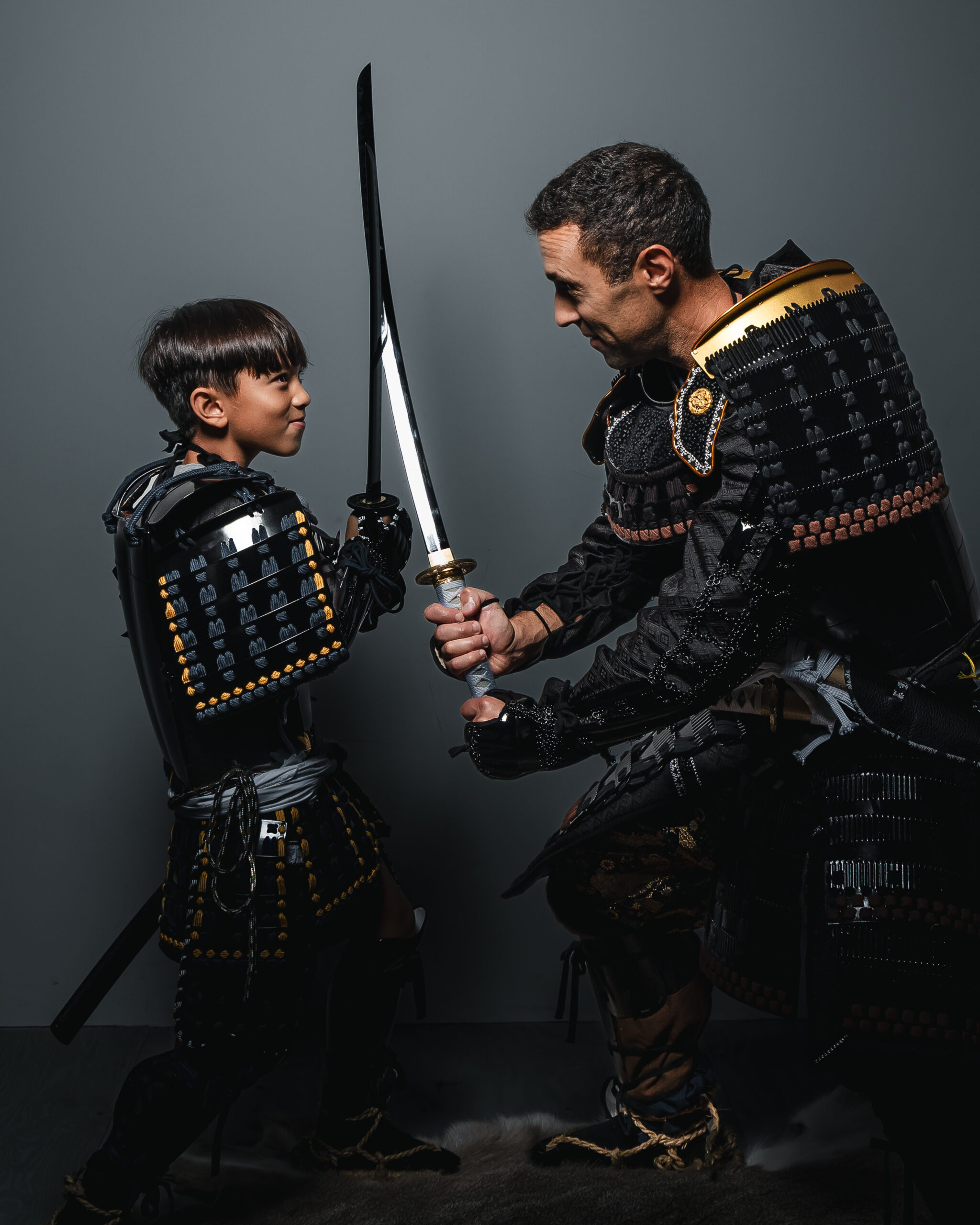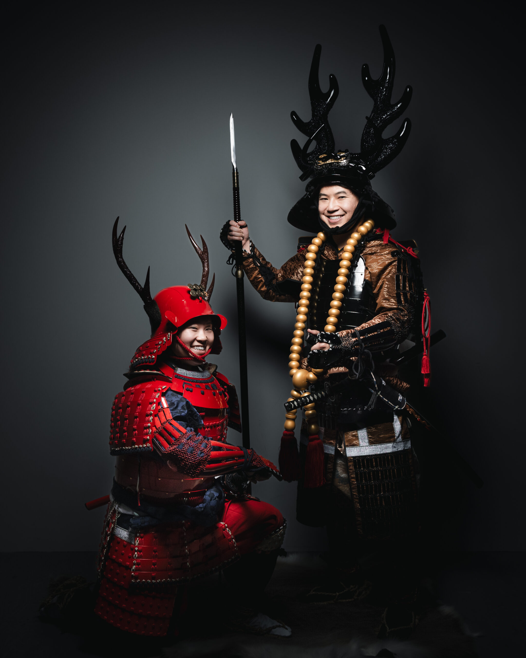 Both of you look absolutely incredible in your samurai outfits — the confidence and strength in your poses make you look like real warriors from the past!