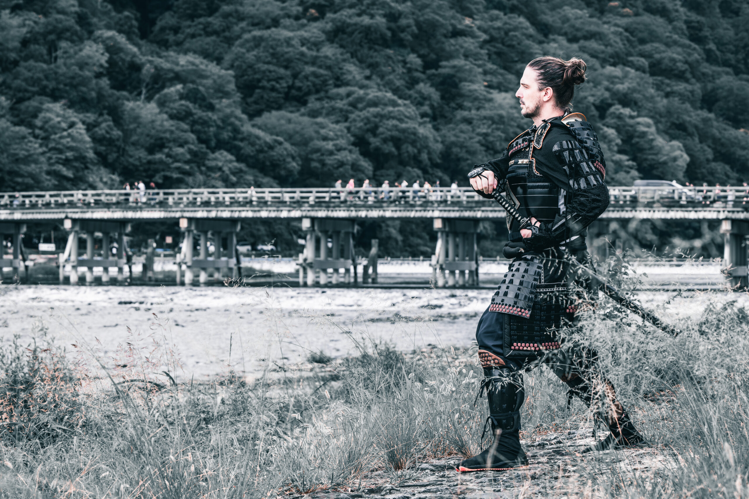 A perfect spot to capture yourself in samurai armor along the beautiful flow of the Katsura River.