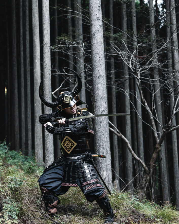 A genuine samurai stance, held with such precision and tension that it feels as though the next moment could erupt into motion.