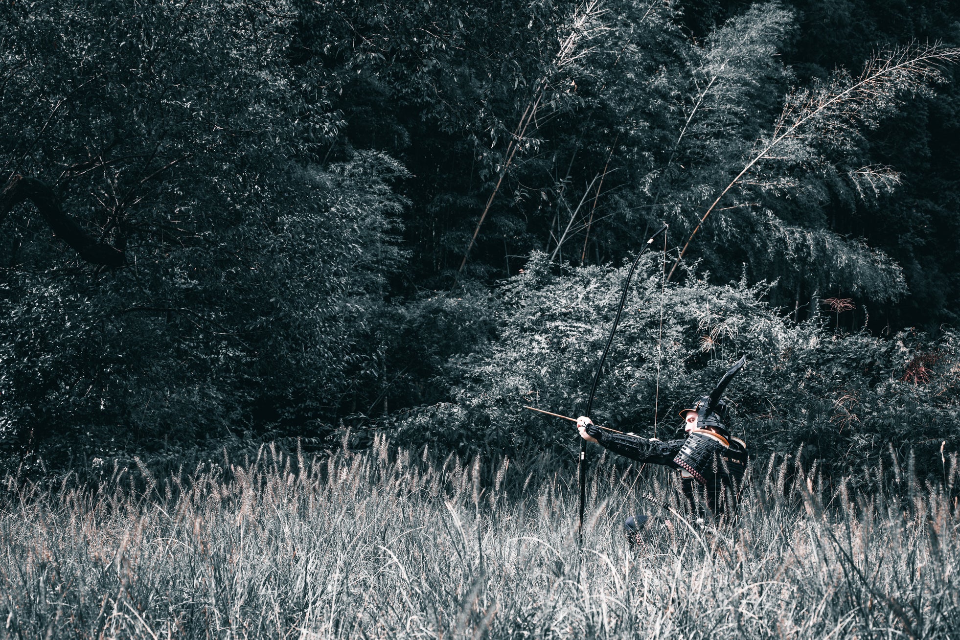 400年続く京都のお茶屋 戦場ロケ地で迫力のバトルシーン撮影! 記念撮影のあとは、山奥にある「バトルフィールド」へ移動。ここでは刀や槍、弓などの武具や、ドローンを使い、映画さながらのムービー撮影を行います。撮影前には、スタッフが刀の扱い方や動き方を丁寧に指導するため、初心者でも安心して参加可能です。仲間と敵味方に分かれて撮影するもよし、一人で挑むもよし。スタッフが敵役となって“斬られる演出”を行うなど、臨場感あふれる撮影が楽しめます。
